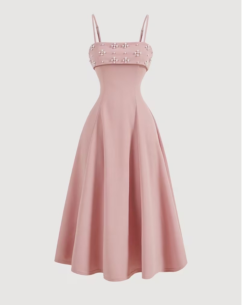 Elegantné dlhé spoločenské šaty na ramienka, s ozdobnými perličkami.