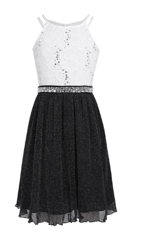 Šaty sú so šifónovou sukňou s jemnými trblietkami, vrchný diel je čipka.