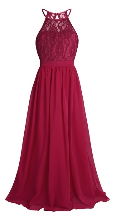 Šaty sú so šifónovou sukňou, vrchný diel je čipka.
