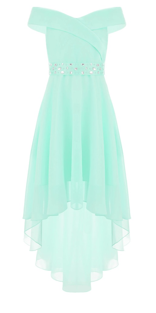 Šaty sú zo šifónu, s ozdobnou stohou v páse.