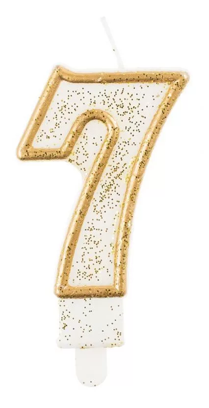 - Sviečka č.7 zlaté trblietky
