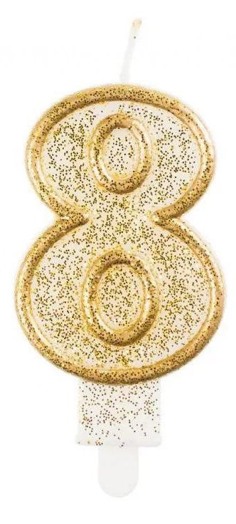 - Sviečka č.8 zlaté trblietky