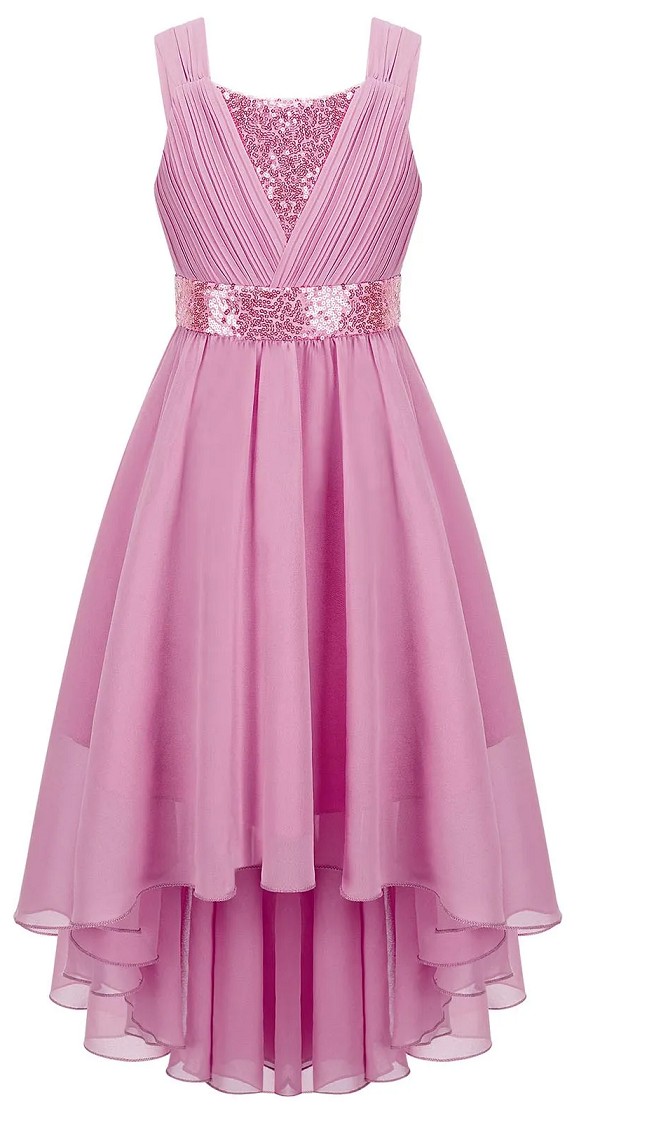 Elegantné spoločenské šaty pre mladé slečny.Šaty sú zo šifónu kombinované s flitrami. Strih- v predu kratšie, v zadu dlhšie.Dobre sa obliekajú, v zadu sú na zips. Šaty sú na OBJEDNÁVKU- dodanie 20-40 dní.dostupné veľkosti a rozmery:veľ.8- 7-8r.- zadná stredová dlžka 85cm, prsia 68cm, pás 64cmveľ.10-... celý popis