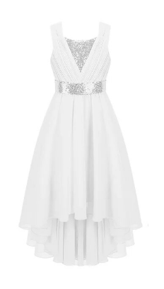 Elegantné spoločenské šaty pre mladé slečny.Šaty sú zo šifónu kombinované s flitrami. Strih- v predu kratšie, v zadu dlhšie.Dobre sa obliekajú, v zadu sú na zips. Šaty sú na OBJEDNÁVKU- dodanie 20-40 dní.dostupné veľkosti a rozmery:veľ.8- 7-8r.- zadná stredová dlžka 85cm, prsia 68cm, pás 64cmveľ.10-... celý popis