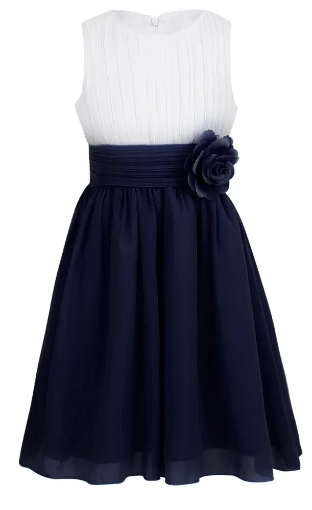 Šaty sú so šifónovou sukňou, s ozdobnou ružou v páse.